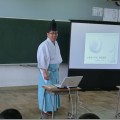 この日の授業では、神楽の始まりや、昔の神楽と現在の神楽の違いや、